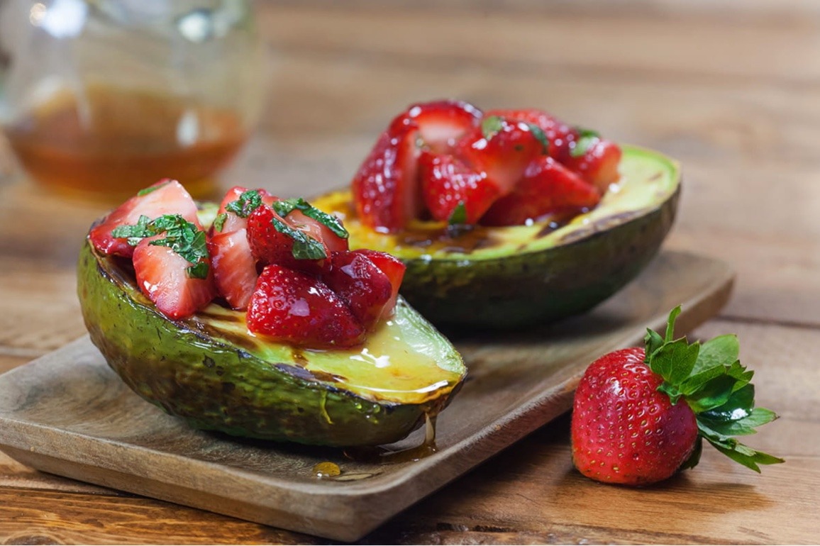 🍓💚 Looking for a fresh, heart-healthy springtime treat? Grilled avocado topped with strawberries, honey, and mint makes a simple, refreshing snack or light dessert.